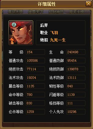 搜索“8090网页游戏” 之前很多玩家以为神仙道145就是满级了,其实不是这样的哈。神仙道可以玩到155级呢,在这里将会出现第五个桃子哈。我们来简单分析一下神仙道155级桃子的经验技巧。8090神仙道能摘155五桃的飞羽属性图,带天命圣11的情况下,暴击王母69万,秒了绰绰有余,就是闪避比较无语,这个没办法,只能看脸,运气好,几次摘了,运气差,刷出CD5分钟也过不去。
