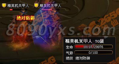 小怪四只机关囧人,绝技是臭名昭著的“绝对防御”,但普通攻击力不高