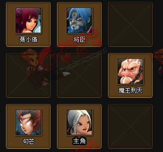 前卫是聂小倩和将臣,中间是魔王刑天,后卫是巨芒,主角。