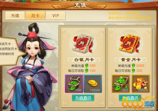 超值月卡充值就送,每天领取大量勾玉,金币还能领取双倍签到奖励