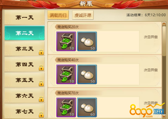 b) 第二天活动:商店购买/许愿达到一定次数可获得大量勾玉和体力祝您一步成仙