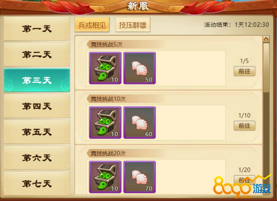 c) 第三天活动:竞技场挑战兵戎相见,群贤群魔力登仙台