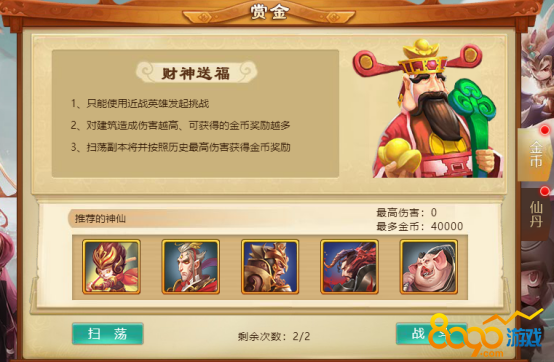 在8090神仙打架游戏中,赏金玩法有两种,一种是打金币,一种是打仙丹,那么赏金活动到底怎么玩呢?