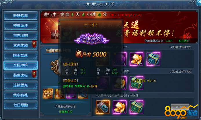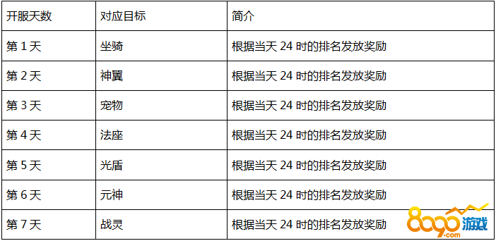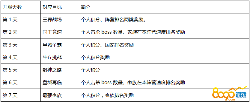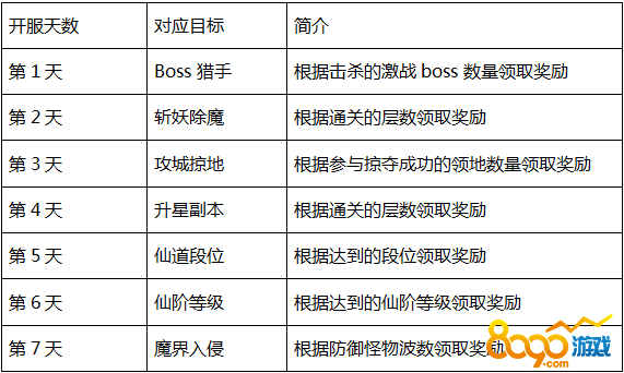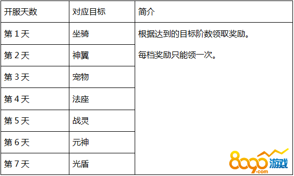 ① 开服7天对应不同的游戏目标,达成目标可领取对应奖励。