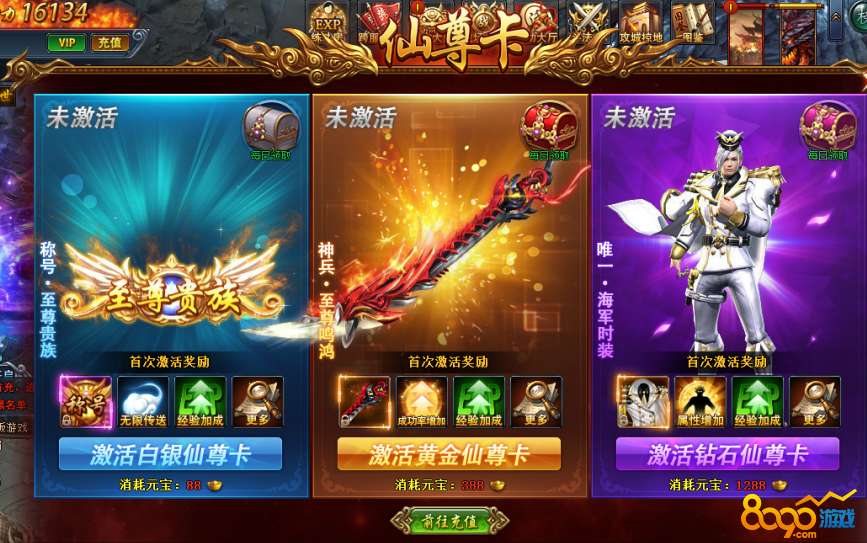 购买仙尊卡可升级为尊贵的仙尊身份,享受特殊权力,获得特殊战力加成。