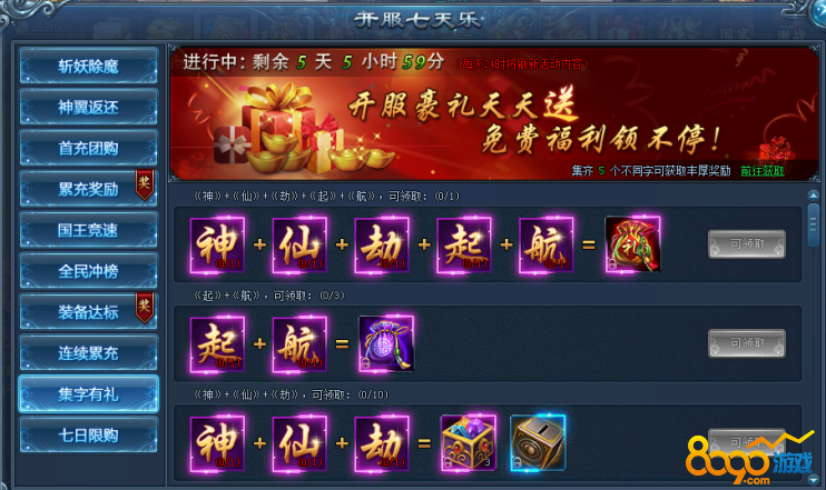 ① 活动期间,击杀野外、练功房怪物有几率掉落不同的《神》《仙》《劫》《起》《航》等字。
