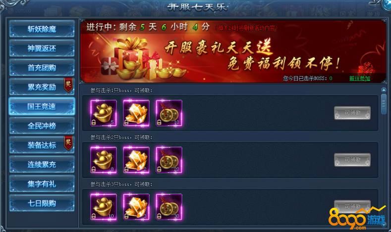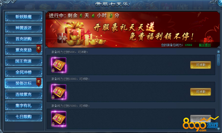 ① 根据开服天数对应不同活动目标,达成目标可领取对应奖励。