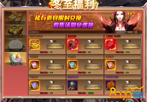 活动四-冬至兑换:活动期间限时开放,可使用热气腾腾的汤圆免费在此兑换各种稀有道具奖励