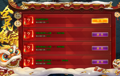 n 全服累计提交对应字符达到一定次数,可领取大量绑定元宝+道具奖励(需要至少提交一次该字符)