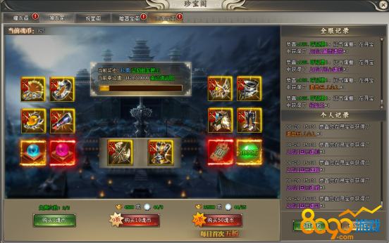 3.灵魂宝阁:购买魂币赠送灵魂装备,每日有3次免费次数,同时每日首次50抽更可打最高5折优惠!