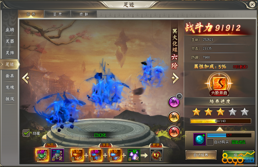 通过足迹培养丹即可提升足迹星级,满5星后足迹将自动进阶,获得更酷炫的外观