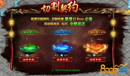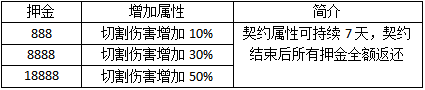 ① 活动期间可抵押钻石使切割伤害暴增,活动结束后100%返还所有钻石,低级契约可补差价转为高级契约。