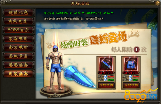 开服前七天可购买炫酷绝版时装,每个玩家限购一次