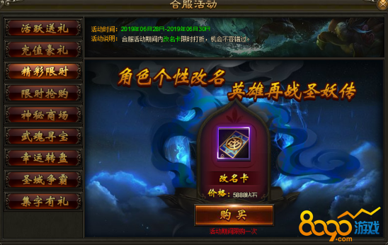 b) 活动说明:活动期间内,改名卡限时打折,限购一次