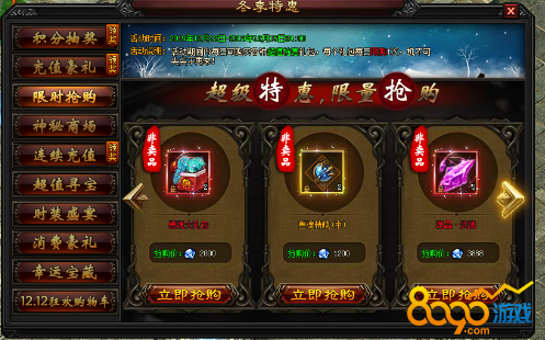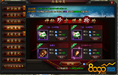 4.2 活动期间内,神秘商场每日刷新各种珍稀道具,打折出售限量抢购。