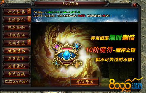 6.2 活动期间内,寻宝中新增10阶魔符,并且高级装备的概率双倍抽取