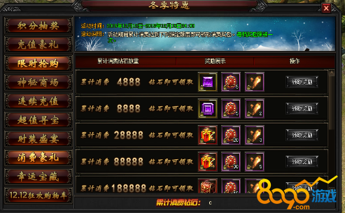 8.2活动期间内,累计消费达到一定额度即可领取对应档次极品奖励