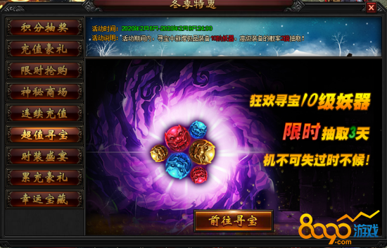6.2 活动期间内,寻宝中新增10阶妖器,并且高级装备的概率双倍抽取