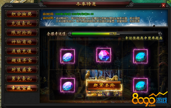 9.1 活动期间内,全服玩家在抽取王之宝藏的时候都会增加全服幸运值