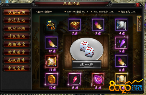 1.2 活动期间内击杀boss可获得积分,每天最多可以获得3次摇奖机会