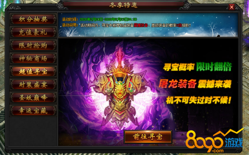 6.2 活动期间内,寻宝中新增屠魔装备,并且高级装备的概率双倍抽取