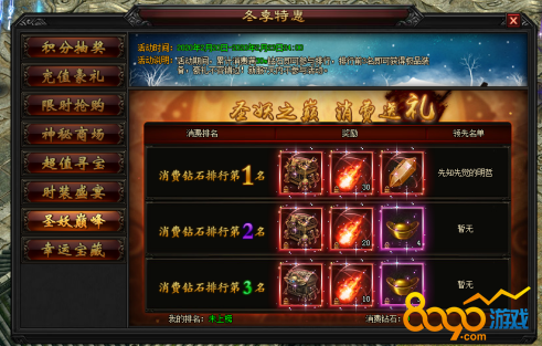 7.2 活动期间内,累计消费满30W钻石即可参与排行,排名前三即可获得极品装备!