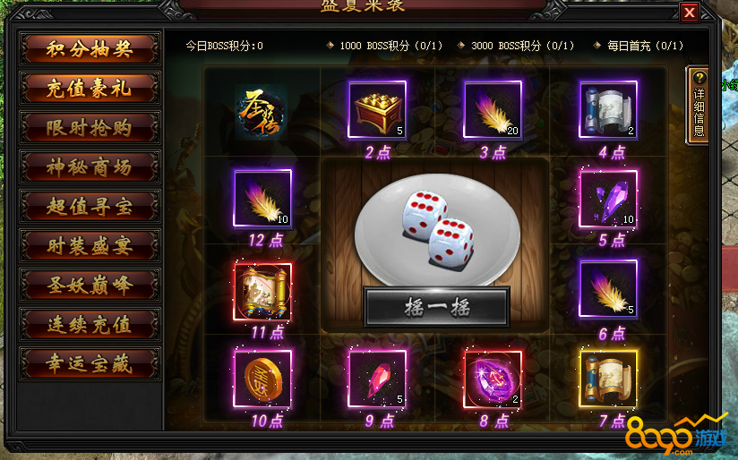 1.2 活动期间内击杀boss可获得积分,每天最多可以获得3次摇奖机会