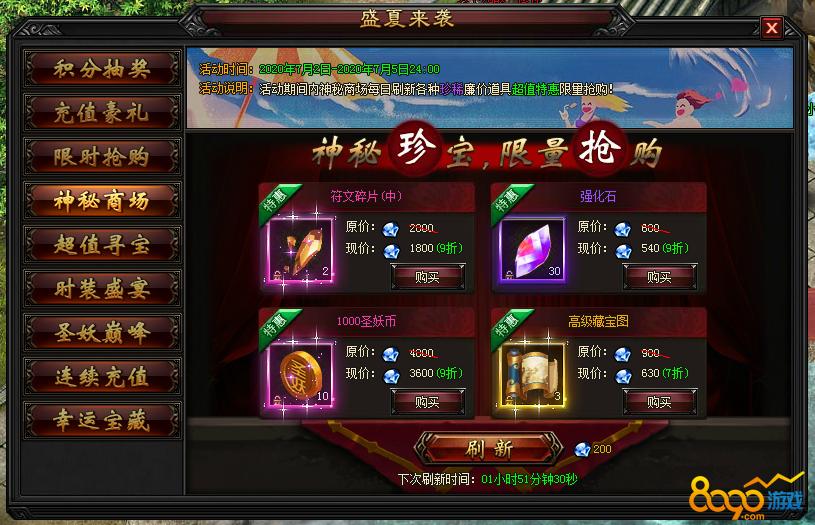 4.2 活动期间内,神秘商场每日刷新各种珍稀道具,打折出售限量抢购。