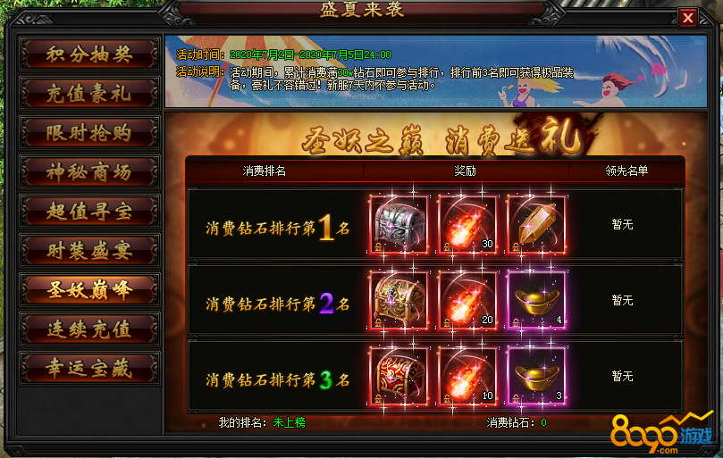 7.2 活动期间内,累计消费达到对应的金额即可参与排名,活动结束后排名前三的玩家可通过邮件领取对应的奖励!