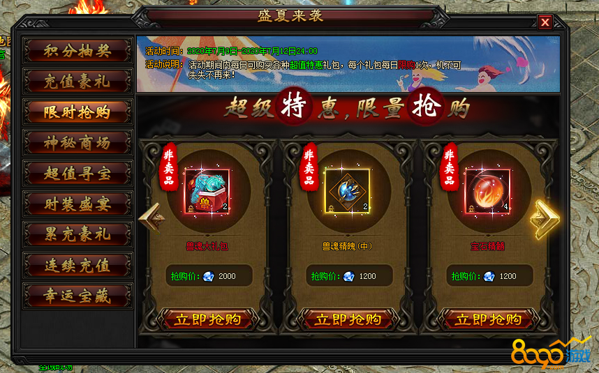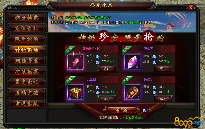 4.2 活动期间内,神秘商场每日刷新各种珍稀道具,打折出售限量抢购。