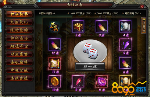 1.2 活动期间内击杀boss可获得积分,每天最多可以获得3次摇奖机会