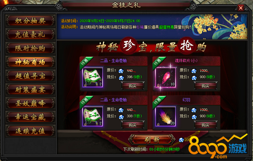 4.2 活动期间内,神秘商场每日刷新各种珍稀道具,打折出售限量抢购。