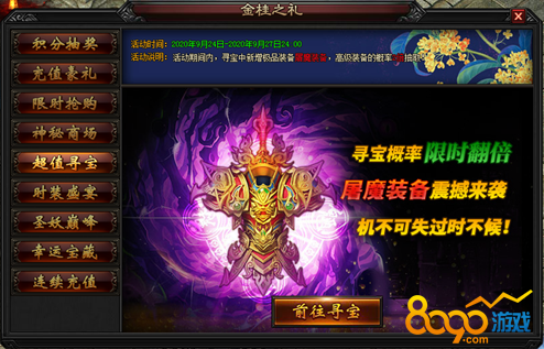 5.2 活动期间内,寻宝中新增屠魔装备,并且高级装备的概率双倍抽取
