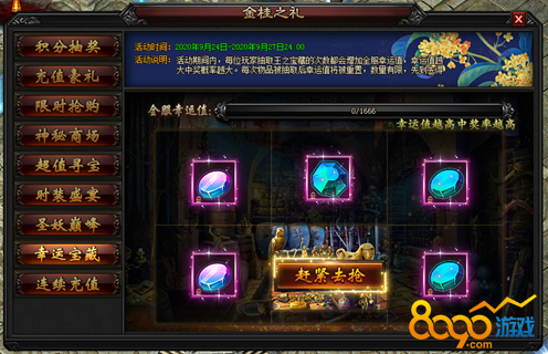 8.1 活动期间内,全服玩家在抽取王之宝藏的时候都会增加全服幸运值