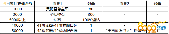 4.累计充值5000元及以上档位均可获得100%钻石返利
