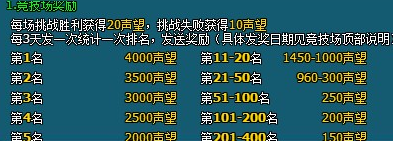 而获得声望最重要的途径就是排行榜。作为非R,在前期我们只要保证能够迅速的集齐一套百兽装备,在竞技场几乎是越战越勇的姿态。在竞技场发奖的那天,要确保自己能够排在20名以前,这样至少发放奖励时能拿到1000声望,还有大量的仙石可以获得。