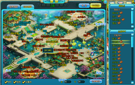 小地图右边对应玩家角色当前所在场景地图中包含的NPC列表,选中要寻找的NPC后双击鼠标左键即可轻松到达该NPC身边,也可直接点击左侧当前地图进行寻路。