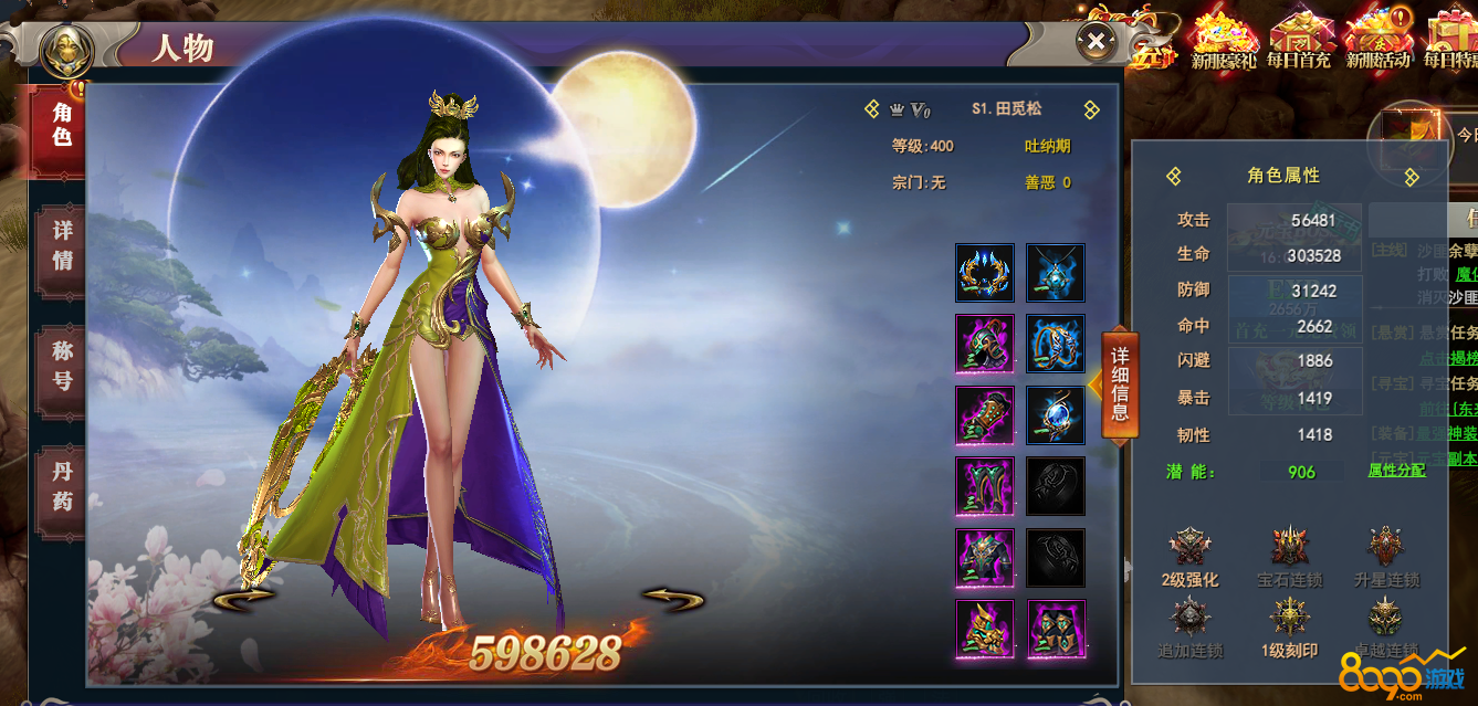 人物系统是游戏中的基础系统,在这个系统中,用户可以查看角色外观或属性;查看装备状况;服用各种属性丹药及穿戴各种称号