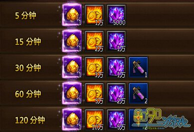 在线超过两小时可以领取到点金石、金币、魔晶和重生十字章,其余各阶段奖励如上图所示,在线时间越长奖励数量也就越多。