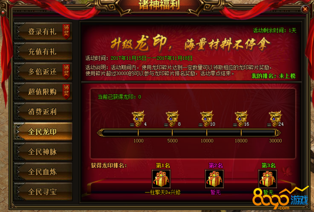 2、活动说明:活动期间,使用龙印碎片达到一定数量可以领取相应的奖励,使用碎片超过30000的可以参与龙印碎片排名奖励,活动零点结束。
