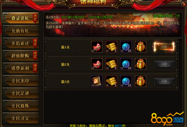 2、活动说明:活动期间,每日登陆可领取免费礼包一份,登陆越多礼包越丰厚哦。