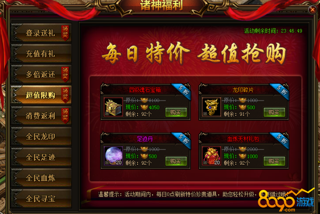 2、活动说明:活动期间内,每日0点刷新特价珍贵道具。