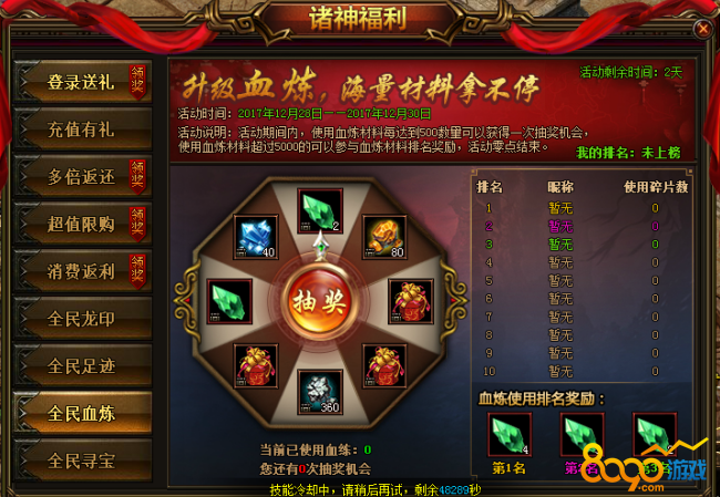 2、活动说明:活动期间,使用血炼材料达到一定数量可以领取相应的奖励,使用碎片超过5000的可以参与血炼排名奖励,活动零点结束。