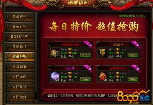 2、活动说明:活动期间内,每日0点刷新特价珍贵道具。