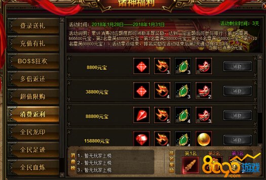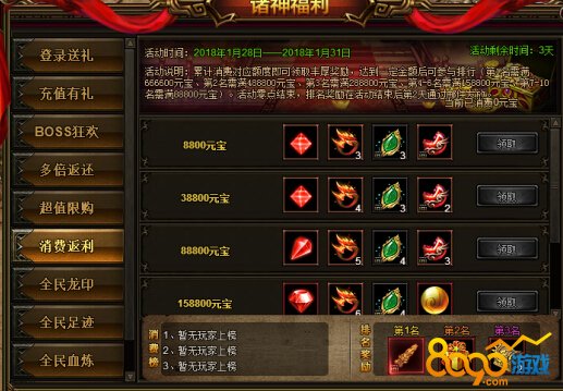 2、活动说明:累计消费对应额度可领取丰厚奖励,达到一定金额后可参与排行活动零点结束,排名奖励在活动结束后第二天通过邮件发放。