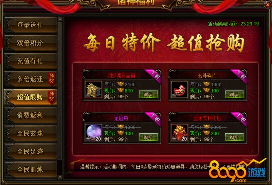 2、活动说明:活动期间内,每日0点刷新特价珍贵道具。