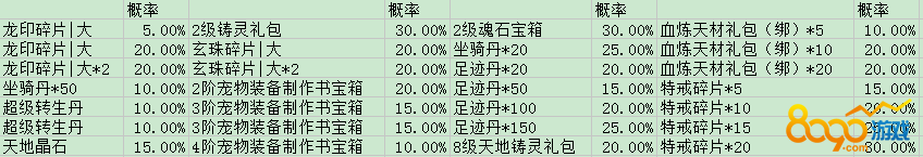 购买龙珠获得极品装备概率公示