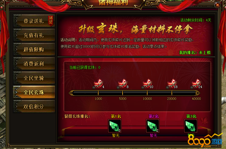 2、活动说明:活动期间,累积使用玄珠碎片可以领取额外珍贵道具,达到一定额度还可以参与排行,排行奖励在活动结束第二天通过邮件发放。