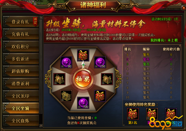 2、活动说明:活动期间,累积使用坐骑丹以领取额外珍贵道具,达到一定额度还可以参与排行,排行奖励在活动结束第二天通过邮件发放。