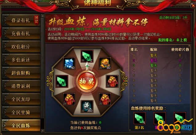 2、活动说明:活动期间,使用血炼材料达到一定数量可以领取相应的奖励,使用碎片超过5000的可以参与血炼排名奖励,活动零点结束。